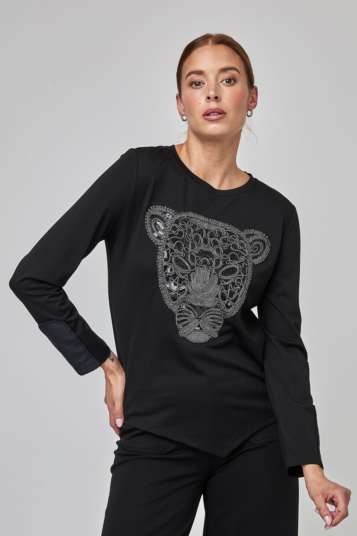 Long Sleeve Top with Animal Motif Sequin Applique | CF25-315